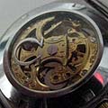 Contains a fairly standard movement, some of the 'skeleton' detail is actually painted on the inside of the crystal dial.