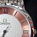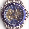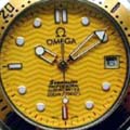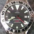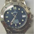 And do not be fooled by watches that claim to come in the original presentation box, there are fakes of the Omega watch boxes and packaging, too. ![]() ![]() ![]() You Make Me Thick; Hollow Promises A common giveaway on fakes is that the main part of their watch casings (excluding the bezel, crystal, and back) are often noticably thicker than the real thing. The fakes can be as much as twice as thick and the real models they are trying to resemble. Also notice that because the cases are so much thicker, that the lugs that hold the bracelet or strap have to curve much more than on the real ones to compensate for the added thickness. 1) A fake DeVille Prestige. 2) A fake Seamaster Professional Diver [photo: Andy Hsu (woobie)]. 3) Fake Seamaster with the display back showing the watch is half hollow! ![]() ![]() ![]() Bizzare Hybrids Fakes sometimes severely mix-up names and features from completely different models -- occasionally making up very odd or nonsensical watches. 1) Chronograph buttons and a tachymeter scale on outer edge of the dial, but no chronograph features! Buttons are completely useless. Bezel was turned to an odd angle to obscure the signs that the dial was on crooked. 2) Looks like a Speedmaster Chronograph -- except it is missing all chronograph features and is labeled as a 'Seamaster.' 3) Seamaster Pro 'James Bond' style watch, but with a GMT hand. Even stranger, despite the Omega name on the dial, the watch is labeled with the non-Omega model name of 'Ocean Master.' ![]() ![]() ![]() ![]() ![]() Seamaster: A Skeleton In The Closet Even Omega's limited and jewelry editions are not immume from counterfeiting. Here is a replica of the $44,000 Seamaster Skeleton. It does not even have a skeleton watch movement! Contains a fairly standard movement with merely a display dial and back. ![]() ![]() ![]() Seamaster Pro: Hands Up! Correct hands are an often overlooked detail on fake watches. 1) These hands are the type used on the 'pre-Bond' Seamaster, not the current model. 2) Close, but the circle on the second hand should be silver, not red. 3) Skeleton hands don't go with the newer GMT-style dial. ![]() ![]() ![]() ![]() ![]() Seamaster Pro: Read the Labels Carefully Dial mislabeling is also a common error. Look at not only at what words should and shouldn't appear, but also the placement, lettering style, and clarity of printing. 1) Should say PROFESSIONAL CHRONOMETER, not AUTOMATIC. 2) All labeling besides the Omega name and symbol are missing, as are all the red details on the hands. 3) 'Seamaster' not in correct typeface, missing PROFESSIONAL CHRONOMETER and the depth rating. 4) Used vintage form of Omega logo, should not have anything but logo and Omega name above hands. 5) Very sloppy printing of logo markings. ![]() ![]() Seamaster Pro: A Rose By Any Other Name...Is A Fake Further dial mislabeling -- using the wrong name on a watch. 1) Seamaster replica inadvertently labeled Speedmaster. 2) Another Seamaster replica mislabeled as Speedmaster. Also labeled as a 'CHRONOGRAPH' -- which it clearly isn't. And Omega does not put the word 'QUARTZ' on the dial of any current or recent models. ![]() ![]() ![]() ![]() ![]() Seamaster Pro: Missed the Mark High quality watches like those from Omega pay particular attention to fine details of sizing, proportion, and alignment that the fakes often miss. But even on the real watches, the hands do no always align perfectly with dial and bezel markings -- due to the complexity of positioning all the mechanical and cosmetic parts. 1 & 2) Missing hour marker at 3 o'clock (which are on real Seamaster models that have this much room between date window and 3 o'click marker). Also, date too far inboard, minute hand does not reach minute markers, dot on second hand should be smaller than one on hour hand, should not have metal rims around hour markers. 3) Oversized flourescent marker on bezel. 4) Marker raised above surface of bezel. 5) Raised markers on dial with very heavy frames. ![]() ![]() ![]() ![]() Seamaster Pro: Mismatched Colors and Combinations Fakes often come in color combinations not offered by the manufacturer. 1) Current model Pro Diver never made with black dial and black bezel (though the GMT and America's Cup edition do have a black dial). 2) Pro Chronograph not made in black either, subdials should match dial color, subdial hands should be red, missing milled edges around base of chronograph pushers. 3) Seamaster Pro Diver not made with the blue bezel and white dial together. Also note severe alignment problems with dial, bezel, and date window. 4) Seamaster Pro Chronograph also not made with blue bezel and white dial together. ![]() ![]() ![]() ![]() ![]() Seamaster Pro: Austin Powers' Choice? Not content with Omega's tasteful choices and combinations of colors, fakes come in numerous dial colors not available on the model they are copying 1) gray, 2) yellow, 3) peach, 4) purple, and 5) glow in the dark! ![]() ![]() ![]() ![]() ![]() Seamaster Pro: Missing Links Bracelets are another area where fakes usually skimp on quality and detail. 1) Simple imitation of the elaborate 9-section Seamaster bracelet links. 2) Back side of bracelet shown in #1 reveals it is only a one piece link. 3) Entire bracelet and watch done in a polished steel finish. Real Seamaster Pros are mostly brushed steel finish with a few polished highlights. 4 & 5) Cheap folded metal links top and bottom side views. ![]() ![]() ![]() ![]() Seamaster Pro: Failure to Clasp the Situation 1) Clasp lacks release pins on sides, text is raised instead of engraved. 2) Clasp is completely incorrect. 3) Clasp resembles the older style, like used on the 'pre-Bond' version. 4) Another incorrect clasp. ![]() ![]() ![]() ![]() ![]() Seamaster Pro: Watch Your Backsides 1) This 'Seamonster' back was so good I had to look closely at a real Seamaster's back to tell the differences. This one is missing the Omega symbol below the seahorse and the deeper embossing effect of